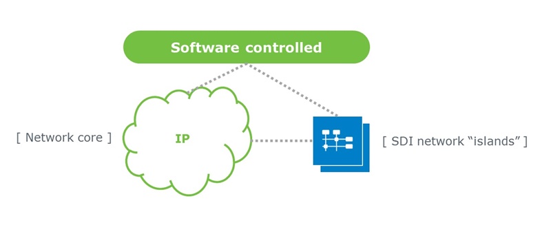 Fairly early in the project, the decision was made to create a “software defined hybrid network”, with IP at the core, and some small SDI “sub-networks” connecting islands of SDI equipment. The whole network would be controlled seamlessly by software.