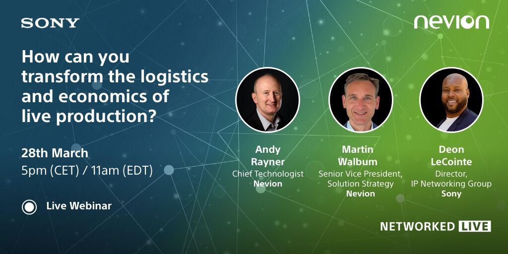 In this webinar, hosted by Nevion Chief Technologist, Andy Rayner, the panel will examine how live production will be evolving in coming years, transforming the business or broadcasting. They will consider in particular appeal of hybrid on-premises and Cloud production, and how to find the right mix each time. They will outline the role that Sony and Nevion’s Networked Live can play on delivering that vision, including new products and technologies.