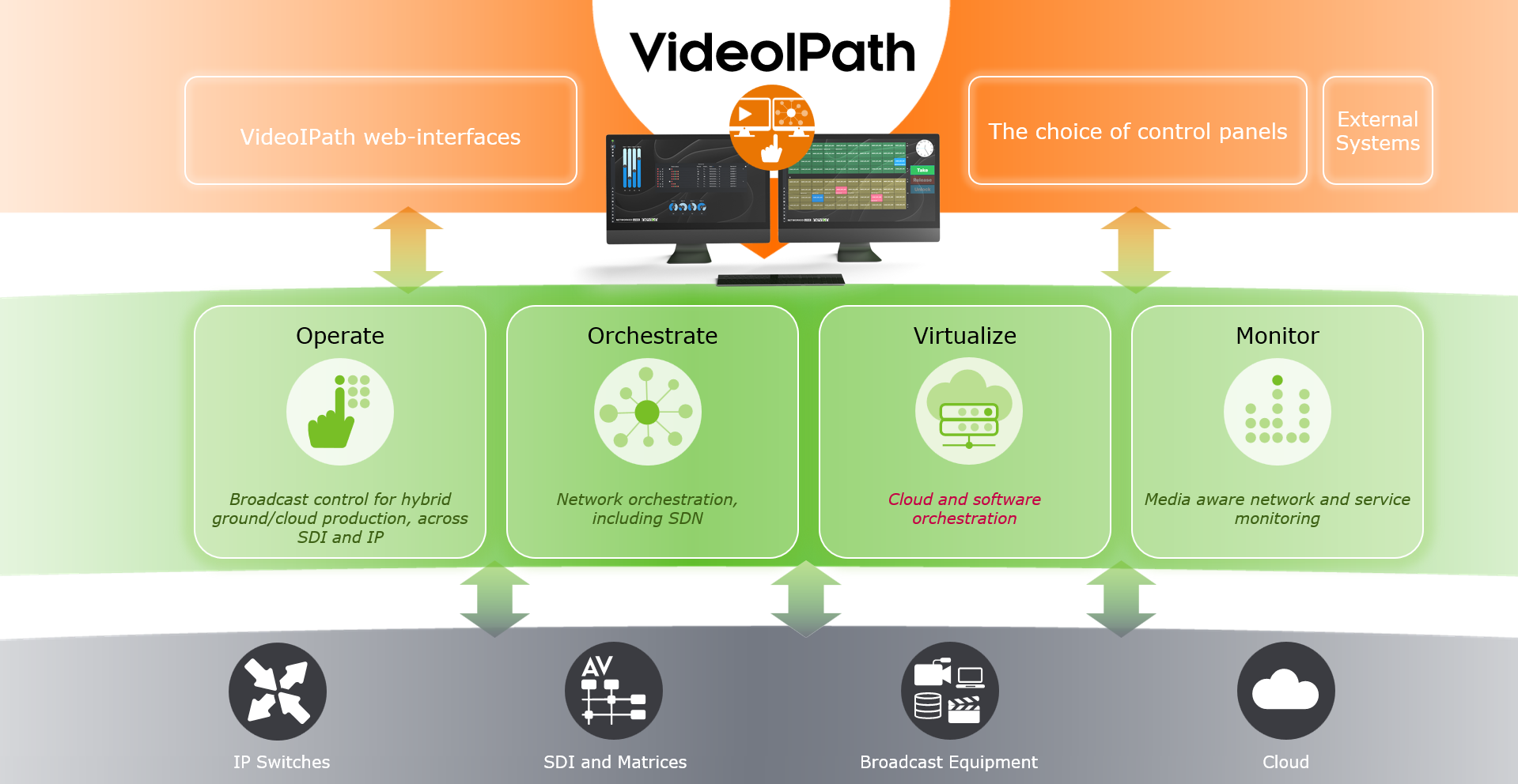 VideoIPath is a media orchestration platform that provides broadcast control, vendor-agnostic orchestration and monitoring: